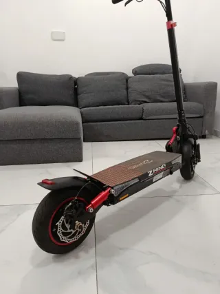 Patinete eléctrico Zwheel Zrino Duo en color negro y rojo. Ideal para desplazamientos urbanos. Homologado por la DGT, con papeles, casco, cargador y kit de herramientas. 40 Km autonomía 1 Mes de uso