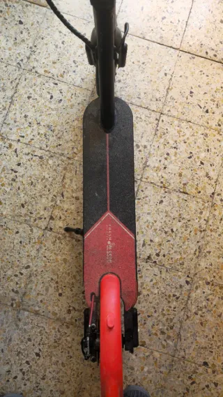 Patinete eléctrico de la marca Ninebot. Diseño moderno y funcional. - Color negro y rojo. - Ruedas de goma. - Manillar mazizo