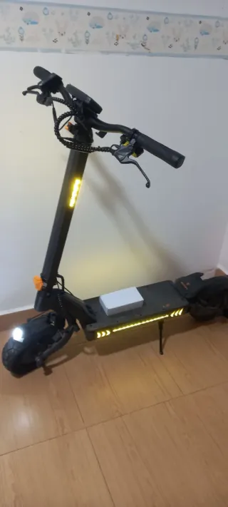 Patinete eléctrico de la marca Ecoxtrem, ideal para desplazamientos urbanos. - Diseño moderno en color negro y detalles naranjas. - Manillar ajustable en altura. - Ruedas todoterreno. Velocidad máxima 77 montado pero marca 85 porque tiene 8 kilómetros subidos,autonomía 55,60.tambien acepto cambios es lo que me interesa