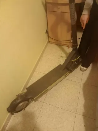 Patinete eléctrico necesita cambio de batería , lo demás funciona correctamente. - Diseño plegable para facilitar su transporte. - Ruedas delanteras y traseras. - Manillar ajustable en altura.