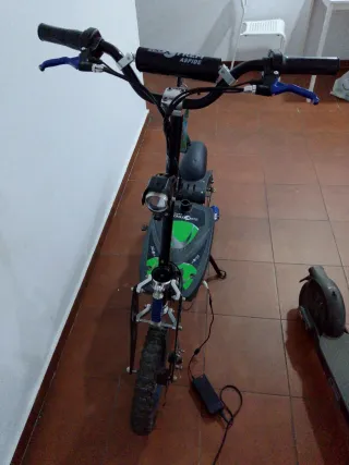 Se vende patín eléctrico Ecoxtrem. - Manillar con puños negros. - Freno de mano. - Rueda delantera y trasera. Motor 800 vatios - Plataforma negra con detalles rojos. - Cable de carga incluido. El patín funciona perfectamente y frena