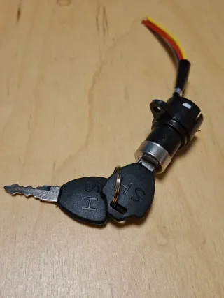 Se vende interruptor de encendido para patinete eléctrico, con dos llaves. - Incluye dos llaves. - Cableado con tres colores (rojo, amarillo, azul). - Montaje sencillo.