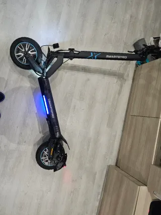 Patinete eléctrico SmartGyro crossover dual max 2 con luces LED homologado por la DGT tiene 475 km uso de medio año masomenos lo utilizaba para ir a trabajar y ahora lo vendo porque ya tengo coche. Lo vendo con el cargador y la factura de compra que se compro en el decatlhon. TODVIA TIENE GARANTIA. - Diseño moderno y robusto. - Manillar ajustable. - Ruedas todoterreno. - 2 motores de 500w cada uno total 1000w
