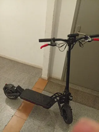Patinete eléctrico de color negro con detalles en rojo y marrón. - Manillar ajustable. - Bolsa de transporte negra. - Ruedas delanteras y traseras. - dual motor 1000w - factura de compra Terminante luces delantera i trasera Acepto canvio por otro patin aunque tenga que poner dinero