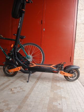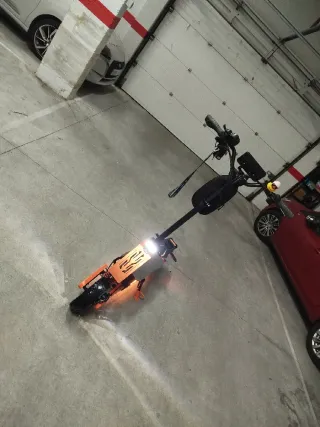 Patinete eléctrico Kukirin G2 en buen estado. - Diseño en color negro y naranja. - Asa de transporte. - Ruedas delanteras y traseras. - 50 km de autonomía