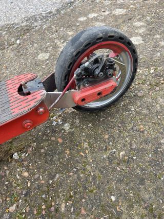 Patinete eléctrico con un problema en la rueda trasera. - Rueda trasera pinchada.