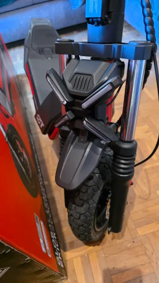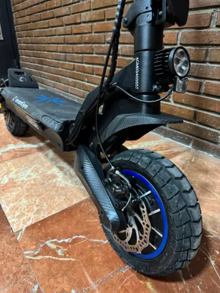 Velocidad máxima 70 km/h Autonomía de 90 km 138km Alcance máximo a 25 km/h 0 a 48 km/h en 3.9 segundos Neumáticos sin cámara autoregenerables de 11 pulgadas Freno de disco delantero y trasero La primera pantalla digital con PM OLED transparente Resistencia al agua IPX4 Plegado fácil en 2 pasos Suspensión hidráulica doble ajustable Luces LED para mayor visibilidad Tiene 1 uso de haberlo probado, su precio oficial en tiendas son 2599€, no guardo la caja por su elevado tamaño, no hago cambios, regateos, ni envios.