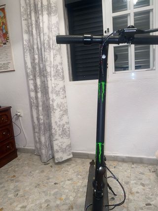 Patinete eléctrico en buen estado, con pegatinas Monster. - Modelo con luces - Incluye pegatinas Monster despegables . - Manillar en perfecto estado. La rueda de adelante hay que ponerla nueva y el guarda barros también