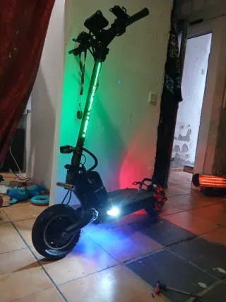 Patinete eléctrico con un diseño moderno y luces. (pondré mas fotos) - Luces LED delanteras y traseras. - Ruedas resistentes. -Batería calidad: LG 52V (18Ah - 23Ah) / 60V 21Ah Potencia nominal: 2x 1000W / 2x 1200W Ruedas: 10 x 3 pulgadas Tipo: Neumático con cámara de aire delantero y trasero Frenos: 18Ah: frenos mecánicos Autonomía: 60 km / 80 km Velocidad:Delimitado a 65/75 Peso: 35 kg Carga máxima: 150