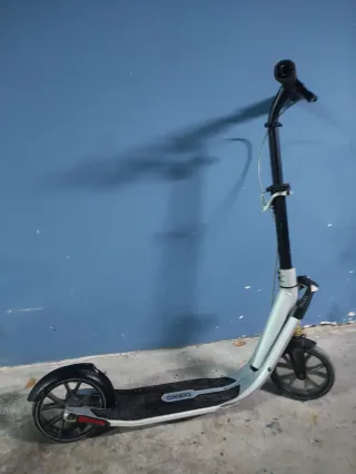 Vendo patinete Oxelo Town 9 no eléctrico, en buen estado. Color gris y negro. Estructura de aluminio ligera y resistente. Freno trasero con palanca en el manillar. Plataforma antideslizante. - Modelo no eléctrico. - Color gris claro y negro.