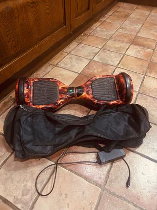 Patinete eléctrico con un diseño llamativo de llamas. Incluye funda de transporte y cargador. - Diseño de llamas en la carcasa. ‼️PRECIO NEGOCIABLE‼️ - Funda de tela negra con cremallera. - Cargador incluido. -luces led. -bluetooth