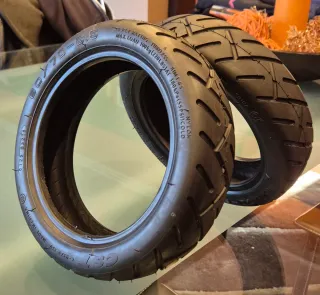 Juego de dos ruedas tubeless (sin cámara), para patinete eléctrico. Las ruedas son de 10 pulgadas de diámetro. El precio es por las 2 ruedas. Otras medidas : 60/70-6.5. Totalmente nuevas. Sin estrenar.