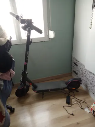 Patinete eléctrico en excelente estado, muy poco uso y funcionando perfectamente. Ideal para desplazamientos por ciudad, ir al trabajo o moverte rápido sin depender del transporte público. - Velocidad máxima: 27 km/h (limitado) - Batería en buen estado - Incluye cargador original - Plataforma de madera antideslizante - Ruedas con detalles rojos - Muy estable y cómodo de conducir Una opción perfecta para moverte por la ciudad de forma práctica y ahorrar en gasolina o transporte. Se vende porque ya no lo utilizo. Se puede ver y probar sin compromiso. Precio algo negociable para interesados reales.