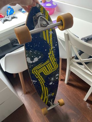 Vendo este longboard de la marca Sector 9, perfecto para cruising y carving. Características destacadas: Marca: Sector 9 (reconocida por su calidad). Estado: Se encuentra en buen estado general. La tabla tiene el desgaste normal de uso que le da carácter (ver fotos de la parte inferior/gráficos), pero la parte superior (grip) está bien. Rendimiento: Las ruedas son Sector 9 de 69mm 80A (según se ve en la foto) y ruedan de manera muy suave y fluida, ofreciendo un paseo muy cómodo y agradable. El precio no es fijo.
