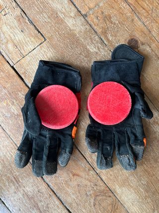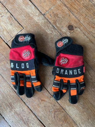 Guantes para longboard de la marca Blood Orange. Diseñados para proteger tus manos mientras patinas. En buen estado, pequeno agujero en un dedo.