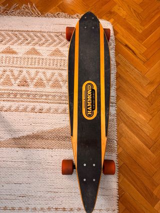 Longboard de la marca Hammond con diseño Vintage Spirit. Tiene algún raspón del uso, nada que afecte a su funcionamiento.
