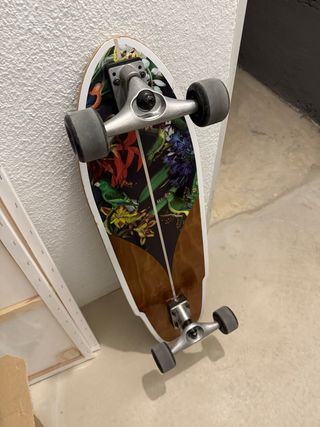 Skate longboard freeride, freestyle de marca surge. Modelo Big Wave Medidas: 8,7” x 38”, ejes 7” , ruedas 78a-70x51 cm Apto para todos los niveles Lo compré por capricho después de la pandemia y apenas lo he usado, el anterior dueño lo utilizo durante un año.