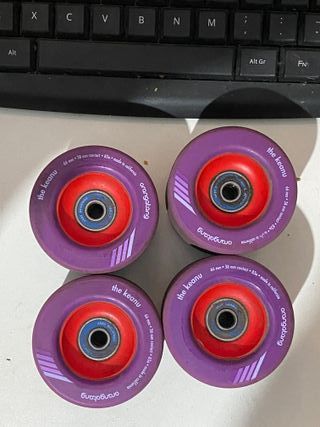 Ruedas de descenso súper gastadas, recomendables para Penny o cruiser. Las uso alguna vez en skatepark para darle segunda vida derrapando en cemento alisado con una short y está curioso