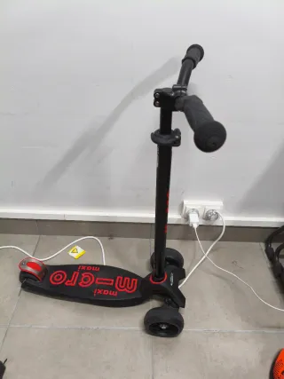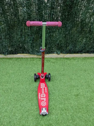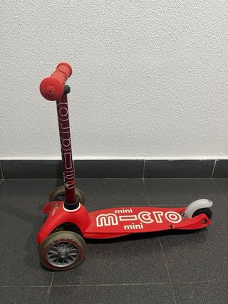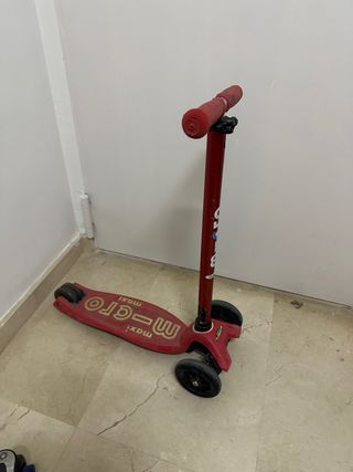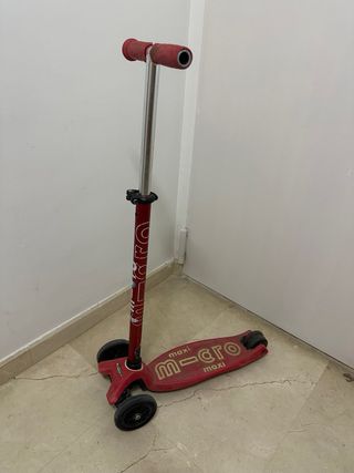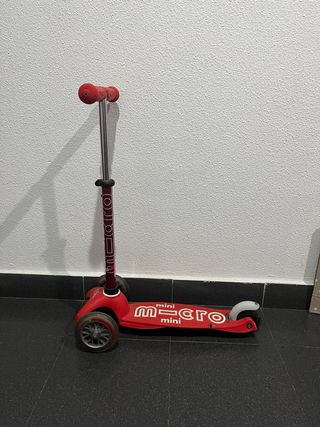 Patinet Micro Maxi, color vermell, ideal per nens de 5 a 12 anys - Tres rodes per a més estabilitat - Manillar ajustable en alçada - Plataforma ample En bon estat! Té guerra per estona!