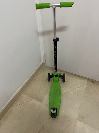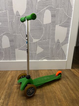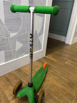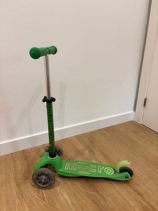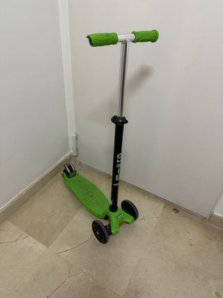 Patinete infantil de la marca Micro, modelo Mini. - Color verde. - Tres ruedas para mayor estabilidad. - Manillar ajustable en altura.