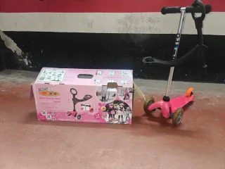 Patínete infantil de la marca Micro en color rosa. Ideal para los más pequeños. - Diseño de tres ruedas para mayor estabilidad. - Manillar ajustable en altura. - Plataforma antideslizante. - incluye asiento para cuando son pequeños - Palo telescópico para empujar al niño en el patín. Evolutivo desde muy pequeños hasta los 6 años. - Freno trasero para un uso seguro cuando son más mayores. - Se encuentra en perfecto estado sin nada roto , con muy poco uso, - únicamente algunos roces del uso normal.