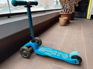 Patinete infantil Micro Mini en color azul. - Tres ruedas para mayor estabilidad. sin luces - Manillar ajustable en altura. - Plataforma antideslizante. usado pero en perfecto estado