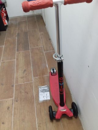 Patinete Micro Mini en color rojo, prácticamente nuevo. Ideal para niños. - Incluye instrucciones. - Manillar y ruedas en perfecto estado. - Color rojo intenso.