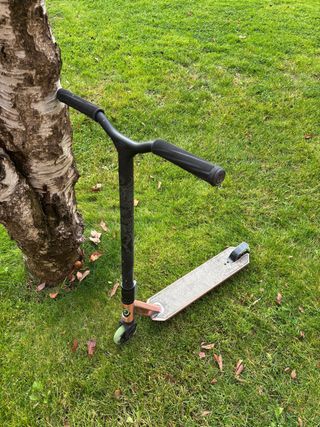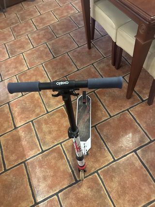 Patinete de freestyle Oxelo, ideal para trucos y desplazamientos. Tiene algunos rasguños que afectan a lo físico pero se puede usar perfectamente y lo recomiendo más que nada para iniciarse y aprender trucos básicos. Tamaño para niño(130cm-155cm aprox.)