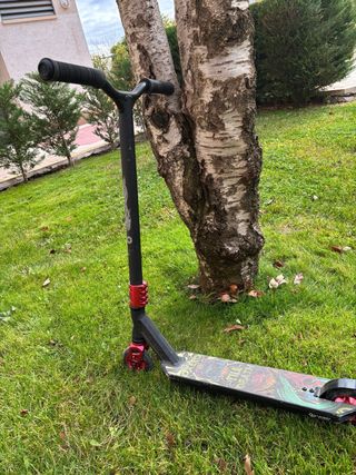 Patinete Oxelo para la práctica de freestyle. - Manillar negro con puños. - Base con diseño gráfico. - Ruedas y frenos en color rojo. En muy buen estado. NO ENVIO.