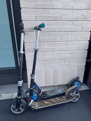 Dos patinetes Oxelo Mid 7 en estado aceptable. Precio de 10€ por los dos, o 7€ la unidad. - Manillar ajustable en altura. - Ruedas grandes para mayor estabilidad. - Plataforma ancha para mayor comodidad.