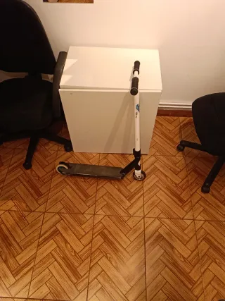 Patinete freestyle Oxelo en color azul, diseñado para trucos, skateparks y demás. Esta muy bien cuidado, la rueda de atrás y el freno esta nuevo, solo un poco sucio del polvo del garaje.