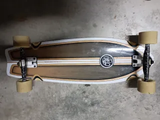 Patineta tipo Carver, ideal para deslizarse y practicar giros. - Tabla con diseño alargado y cóncavo. - Ruedas de color beige.