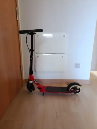 Patinete Oxelo MID9 en color rojo y negro. Usado pero en buen estado. - Manillar ajustable en altura. - Ruedas de 200 mm. - Freno trasero. - Plegable para facilitar su transporte.
