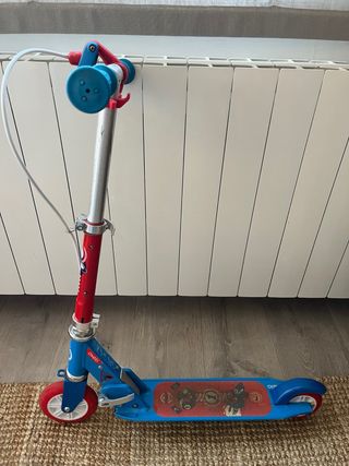 Patinete de la marca Oxelo en color azul y rojo. - Manillar ajustable. - Ruedas de goma. - Plataforma con diseño. - Correa de transporte. - Tengo su caja. NO HAGO ENVÍOS
