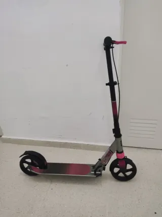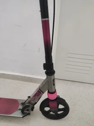 Patinete Oxelo MID9 con un diseño moderno y llamativo en tonos rosas y negros. - Plataforma antideslizante. - Ruedas de gran tamaño para mayor estabilidad. - Manillar ajustable en altura. Solo usado en dos ocasiones , esta nuevo