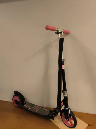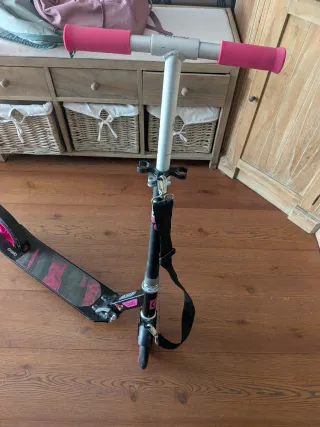 ¡Vendo este patinete Oxelo Mid 9 Beauty Pink (edición especial con diseño floral) en excelente estado para adolescentes! Ideal para peques de 9-14 años (altura 1.25-1.75 m, hasta 100 kg) que quieran rodar con estilo por la ciudad o el parque. Características clave: Suspensión delantera para mayor comodidad en baches. Ruedas grandes de 200 mm en PU rosa, con rodamientos ABEC 5 para un deslizamiento suave. Manillar regulable en altura (hasta 102 cm) y plegable para fácil guardado. Tablero antideslizante ancho con estampado floral beauty en tonos rosados y marrones, súper original y chulo. Freno de pie seguro (pisando el guardabarros)