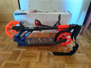 Patinete Oxelo MID7 en buen estado. - Plataforma ancha para mayor comodidad. - Ruedas de 200 mm para un desplazamiento suave. - Freno trasero. - Manillar ajustable en altura.