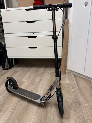 Patinete Oxelo MID9 de Decathlon en buen estado. Ideal para desplazamientos urbanos. - Plataforma ancha para mayor comodidad. - Ruedas de 200mm para un rodaje suave. - Freno trasero. - Manillar ajustable en altura.
