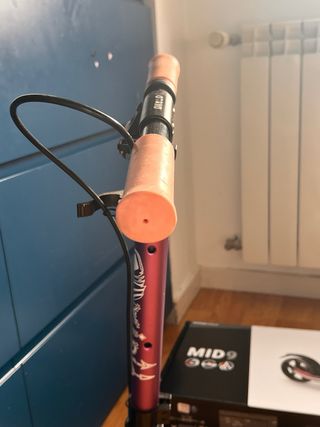 Patinete Oxelo Mid 9 rojo. - Manillar plegable - Plataforma con superficie antideslizante. - Ruedas macizas - Pata de cabra para sujetar el patinete - Freno trasero -Patinete plegable, tanto manillar como el patín en si. -Suspensión delantera -Altura del manillar ajustable.