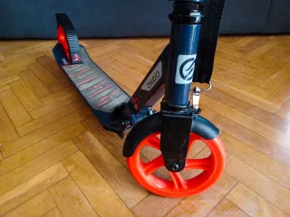 Patinete Oxelo MID 5 en buen estado. - Plataforma ancha para mayor comodidad. - Ruedas de 200 mm para un desplazamiento suave. - Freno trasero. - Manillar ajustable en altura. - Plegable