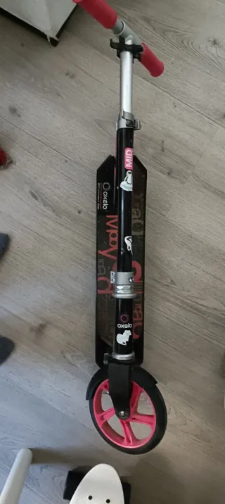 Patinete Oxelo Mid 9 en muy buen estado, ideal para niños y adolescentes de 9-14 años. Cómodo y fácil de manejar, perfecto tanto para paseos como para uso diario. Ruedas grandes de 175 mm de goma PU, que ofrecen mayor estabilidad y suavidad. Rodamientos ABEC 5, deslizamiento fluido y silencioso. Freno trasero + freno en el manillar, para un control más preciso y seguro. Suspensión delantera, absorbe vibraciones y mejora el confort en superficies irregulares. Sistema de plegado rápido con doble seguridad Altura regulable, se adapta al crecimiento del niño. Peso ligero: solo 5 kg, fácil de transportar. Colores gris, negro y rosa.