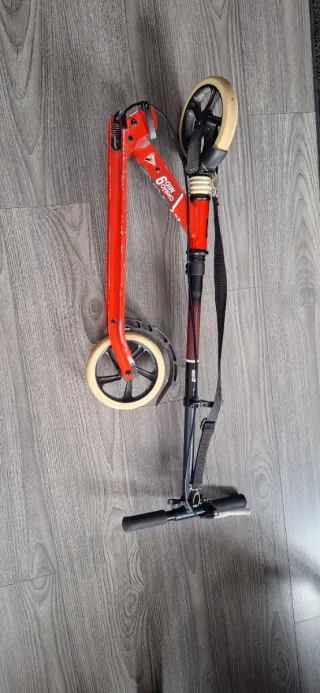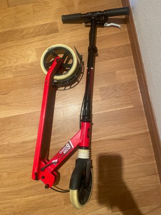 Patinete Oxelo MID 9 en color rojo. Ideal para desplazamientos urbanos. - Plataforma ancha para mayor comodidad. - Ruedas de 230 mm para un rodaje suave. - Freno trasero. - Manillar ajustable en altura y desmontable para que resulte más cómodo guardarlo. - algún rasguño por uso. - Lo entrego limpio