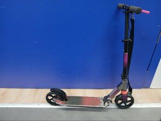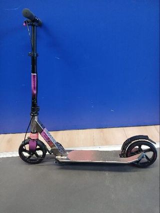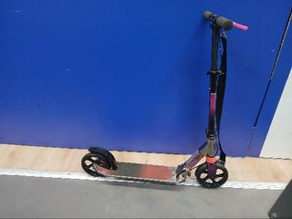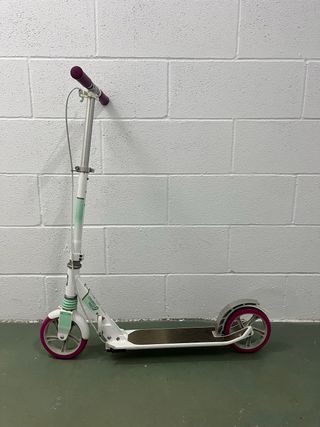 Patinete Oxelo Mid 9 en buen estado, con muy poco uso.I ideal para desplazamientos urbanos. Su diseño combina el color fucsia y negro. - Manillar ajustable en altura. - Freno trasero. - Ruedas de 200 mm. Para alturas entre 1,25 m y 1,75 m, y peso hasta 100 kg. Tiene una altura ajustable y está equipado para trayectos cortos en la ciudad (hasta 2 km).