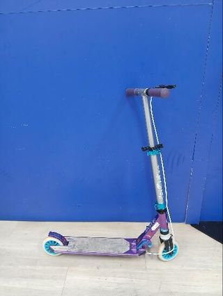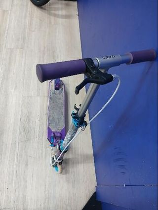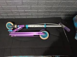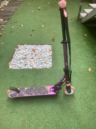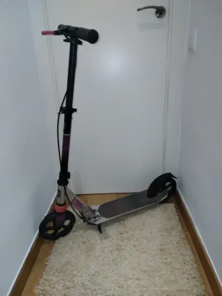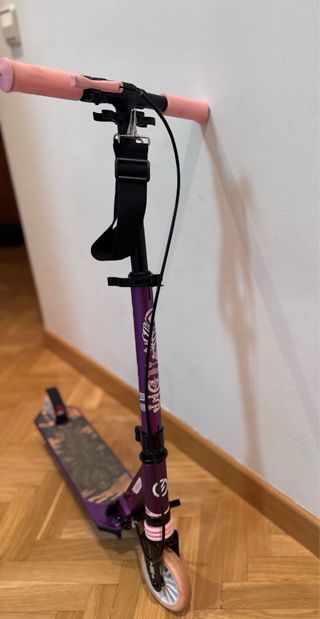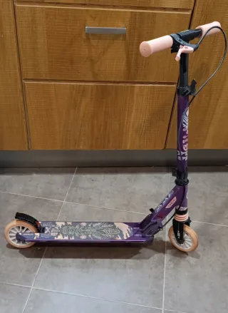 Patinete Oxelo en color morado, ideal para niñas. Diseñado para paseos divertidos. - Manillar ajustable. - Ruedas resistentes. - Freno trasero.