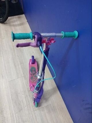 Patinete de tres ruedas en color morado, ideal para iniciarse en el patinaje. - Manillar ajustable en altura. - Ruedas de goma para un mejor agarre. - Plataforma con diseño estampado.