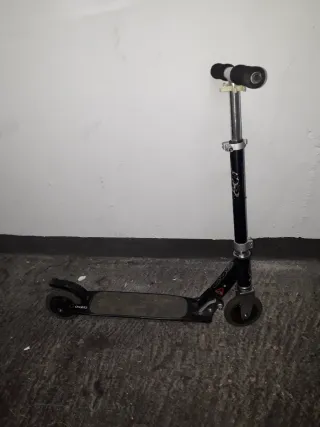 Patinete Oxelo en color negro, diseñado para niños. - Plataforma antideslizante. - Ruedas de goma. - Manillar ajustable. - Cinta para llevar colgado - Herramoentas para repararto