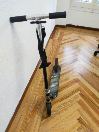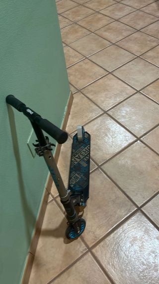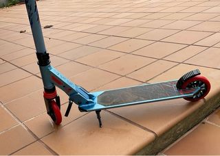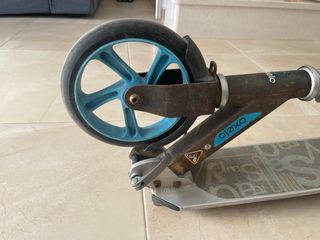 Patinete Oxelo en buen estado, ideal para niños mayores. Es resistente y fácil de manejar. - Ruedas de color azul. - Puños de color verde. - Plataforma con diseño gráfico. Tiene uso pero rueda perfecto