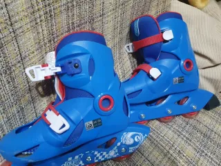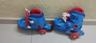 Par de patines en línea Oxelo, ideales para iniciarse en el patinaje. Son ajustables para adaptarse al crecimiento. - Color azul y rojo. - Cierre con velcro y hebillas. - Ruedas de color naranja. Num 26-28 Estan nuevos Muchoa mas articulos en mi peefil