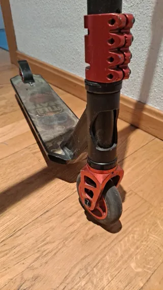 Patinete Oxelo en buen estado, ideal para niños. - Color rojo y negro. - Ruedas de goma. - Manillar ajustable.