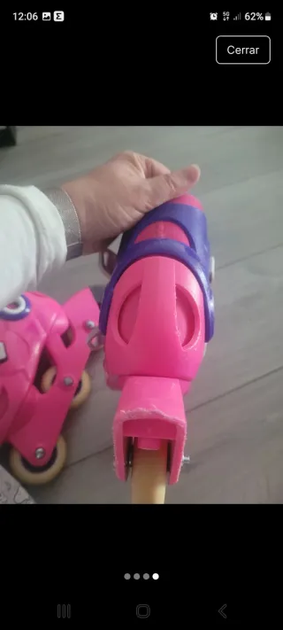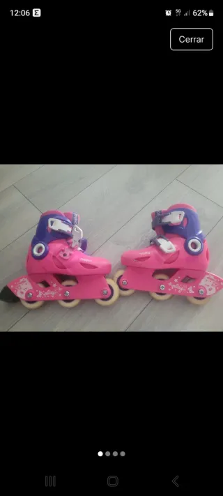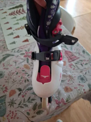 Set de patines rosas con detalles en morado y azul. Talla 28-30 - Diseño ajustable para adaptarse al crecimiento. - Ruedas resistentes para un deslizamiento suave. - Cierres de seguridad para mayor protección.